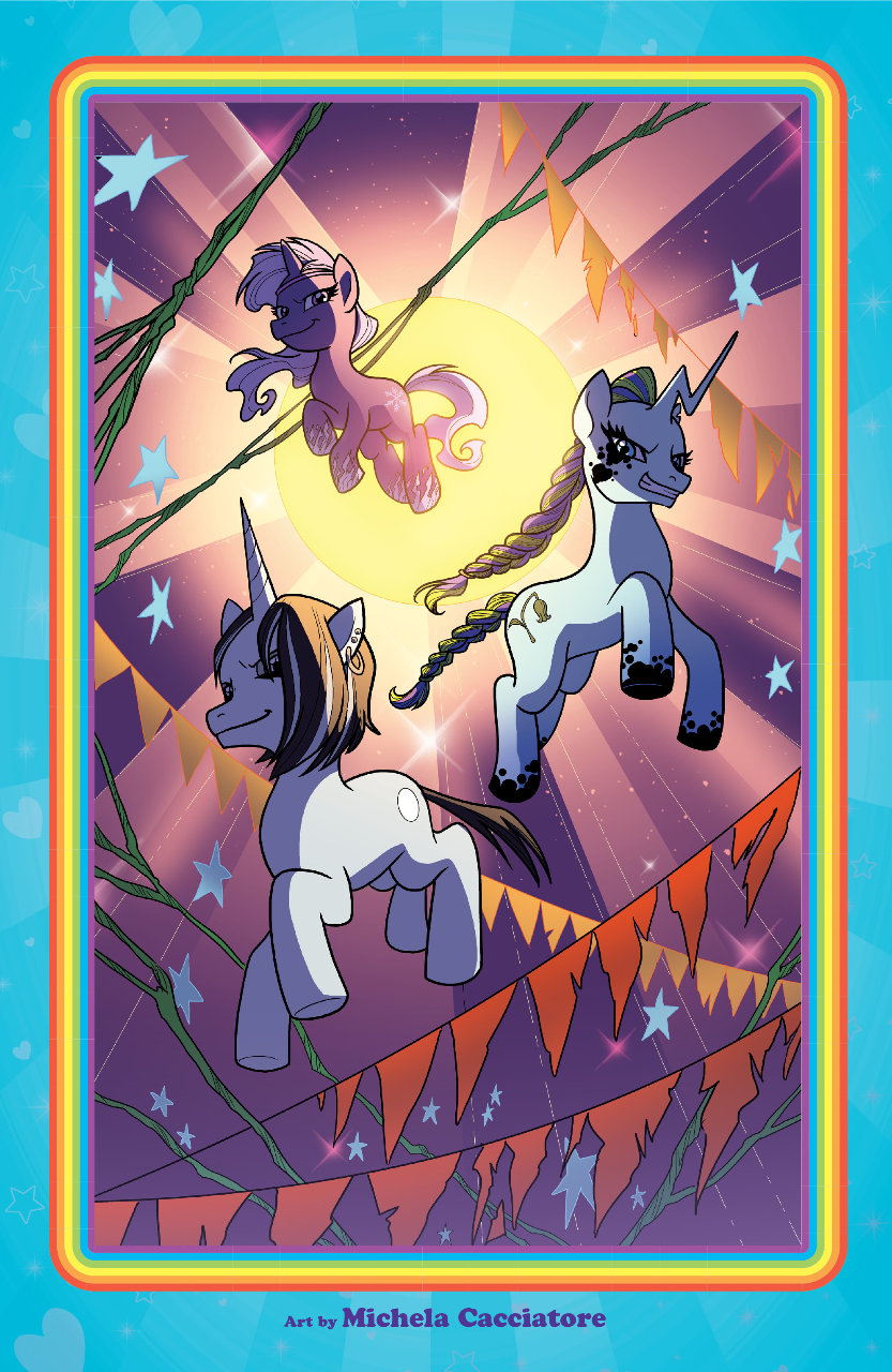 1.《世代交织》系列出场的两位人类女巫(格拉蔻和戴雅)是1986年上映的G1小马大电影出场的三位女巫反派的后代。
