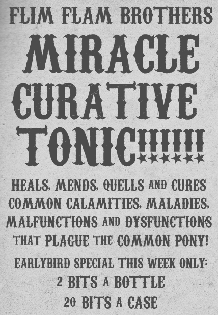 白银看不见油嘴的身影,却能清晰地听见他吹嘘他的补药那奇迹般的功效。观众们的喃喃低语汇聚在一起,嗡嗡作响。相机的快门声和小马们的鼓蹄声时有耳闻。滑舌最后又想大肆推销一通,但苹果杰克的反对声打断了他。