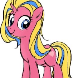 形象:天马,白色皮肤,蓝色鬃毛,有厚重的黑眼圈。右前蹄有斑点胎记,这也是她开展潜行极度困难的原因之一。CM是三颗粉色太妃糖。